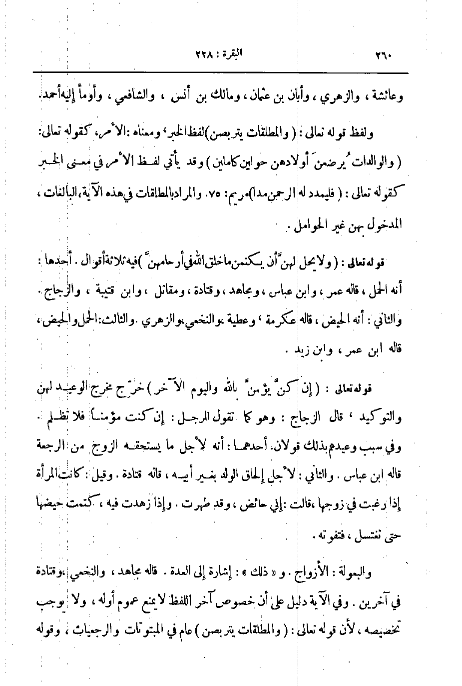 قوله تعالى ولا يحل لهن أن يكتمن ما خلق الله في أرحامهن فيه ثلاثة أقوال أحدها أنه الحمل قاله عمر و ابن عباس و مجاهد وقتادة و مقاتل و ابن قتيبة و الزجاج والثاني أنه الحيض قاله عكرمة وعطية والنخعي والزهري والثالث الحمل والحيض قاله ابن عمر وابن زيد