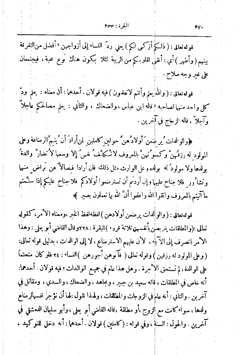 والوالدات يرضعن أولادهن حولين كاملين لمن أراد أن يتم الرضاعة وعلى المولود له رزقهن وكسوتهن بالمعروف لا تكلف نفس إلا وسعها لا تضار والدة بولدها ولا مولود له بولده وعلى الوارث مثل ذلك فإن أرادا فصالا عن تراض منهما وتشاور فلا جناح عليهما وإن أردتم أن تسترضعوا أولادكم فلا جناح عليكم إذا سلمتم ما آتيتم بالمعروف واتقوا الله واعلموا أن الله بما تعملون بصير