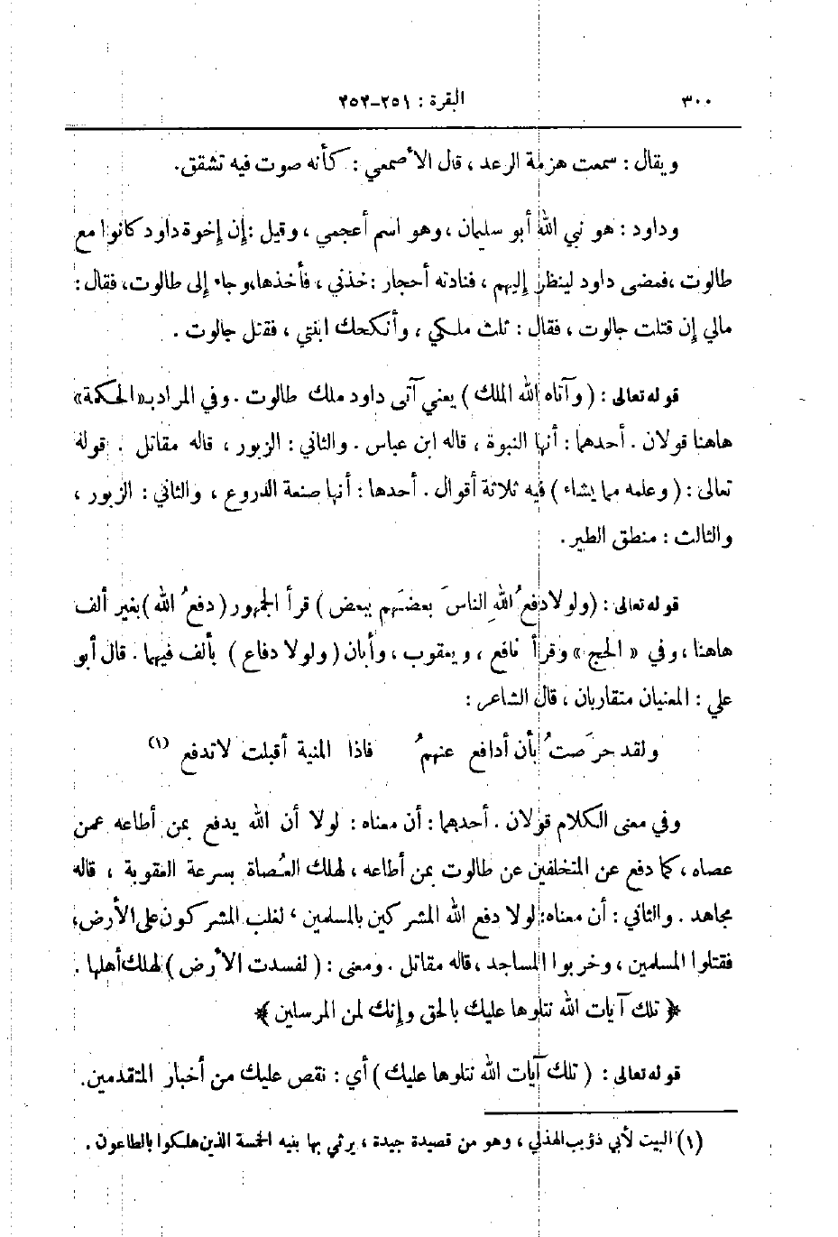 ودواد هو نبي الله أبو سليمان وهو اسم أعجمي وقيل إن إخوة داود كانوا مع طالوت فمضى دواد لينظر إليهم فنادته أحجار خذني فأخذها وجاء إلى طالوت فقال مالي إن قتلت جالوت فقال ثلث ملكي وانكحك ابنتي فقتل جالوت