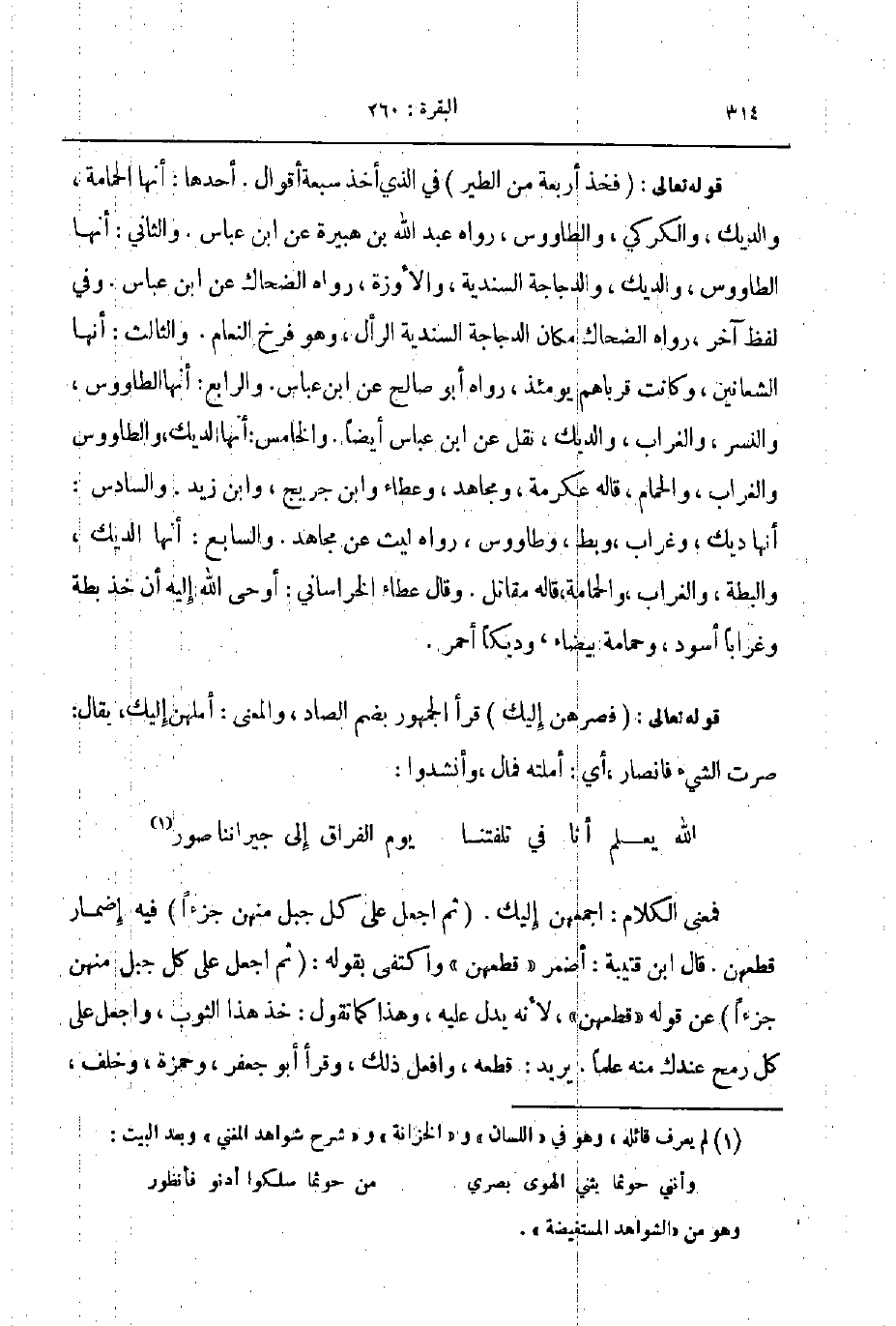 قوله تعالى فصرهن إليك قرأ الجمهور بضم الصاد والمعنى أملهن إليك يقال صرت الشيء فانصار أي أملته فمال وأنشدوا ... الله يعلم أنا في تلفتنا ... يوم الفراق إلى جيراننا صور ...