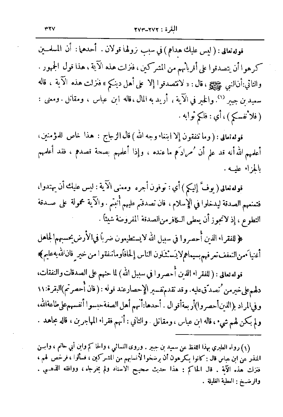 قوله تعالى للفقراء الذين أحصروا في سبيل الله لما حثهم على الصدقات والنفقات دلهم على خير تصدق عليه وقد تقدم تفسير الإحصار عند قوله فان أحصرتم البقرة11 وفي المراد ب الذين أحصروا أربعة أقوال أحدها انهم أهل الصفة حبسوا انفسهم على طاعة الله ولم يكن لهم شيء قاله ابن عباس و مقاتل والثاني انهم فقراء المهاجرين قاله مجاهد