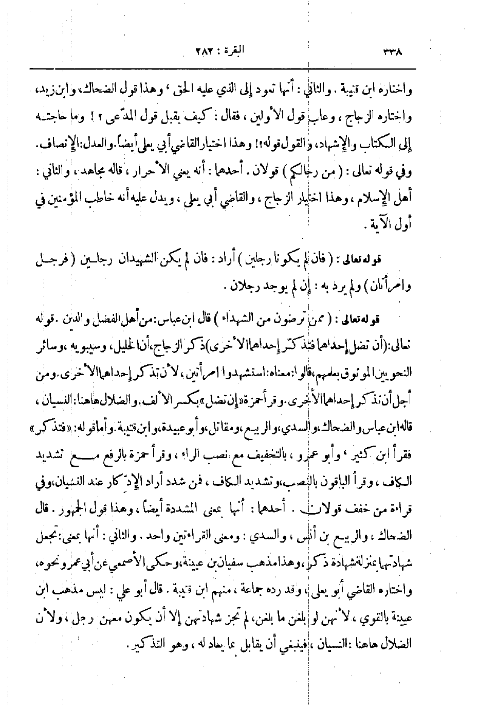 واختاره ابن قتيبة والثاني أنها تعود إلى الذي عليه الحق وهذا قول الضحاك وابن زيد واختاره الزجاج وعاب قول الأولين فقال كيف يقبل قول المدعي وما حاجته إلى الكتاب والإشهاد والقول قوله وهذا اختيار القاضي أبي يعلى أيضا والعدل الإنصاف وقي قوله تعالى من رجالكم قولان أحدهما أنه يعني الأحرار قاله مجاهد والثاني أهل الإسلام وهذا اختيار الزجاج والقاضي أبي يعلى ويدل عليه أنه خاطب المؤمنين في أول الآية