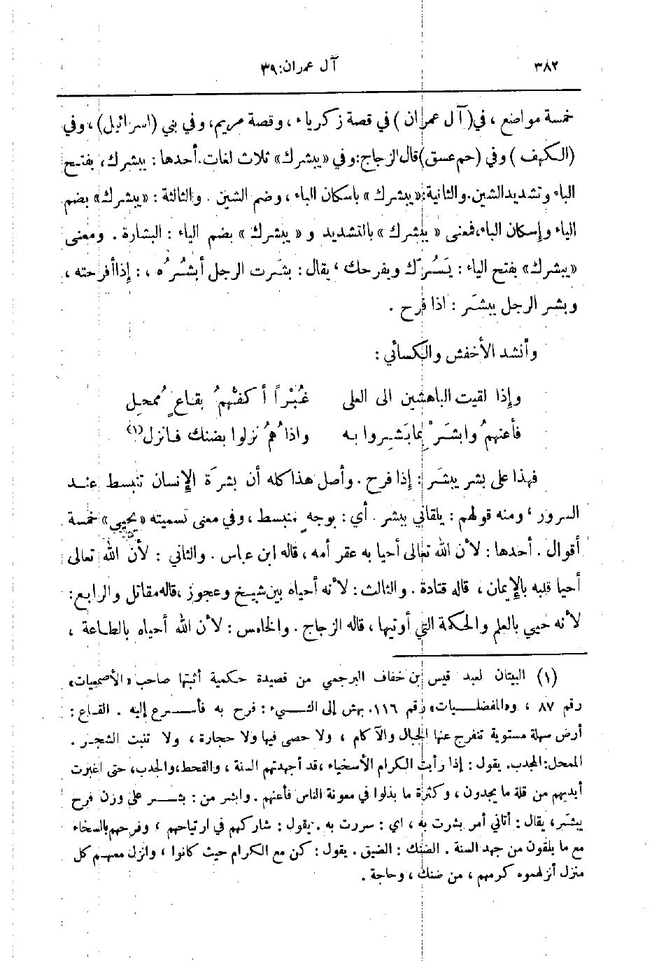وأنشد الأخفش والكسائي ... و إذا لقيت الباهشين إلى العلى ... غبرا أكفهم بقاع ممحل ... فأعنهم وابشر بما بشروا به ... و إذا هم نزلوا بضنك فانزل ...