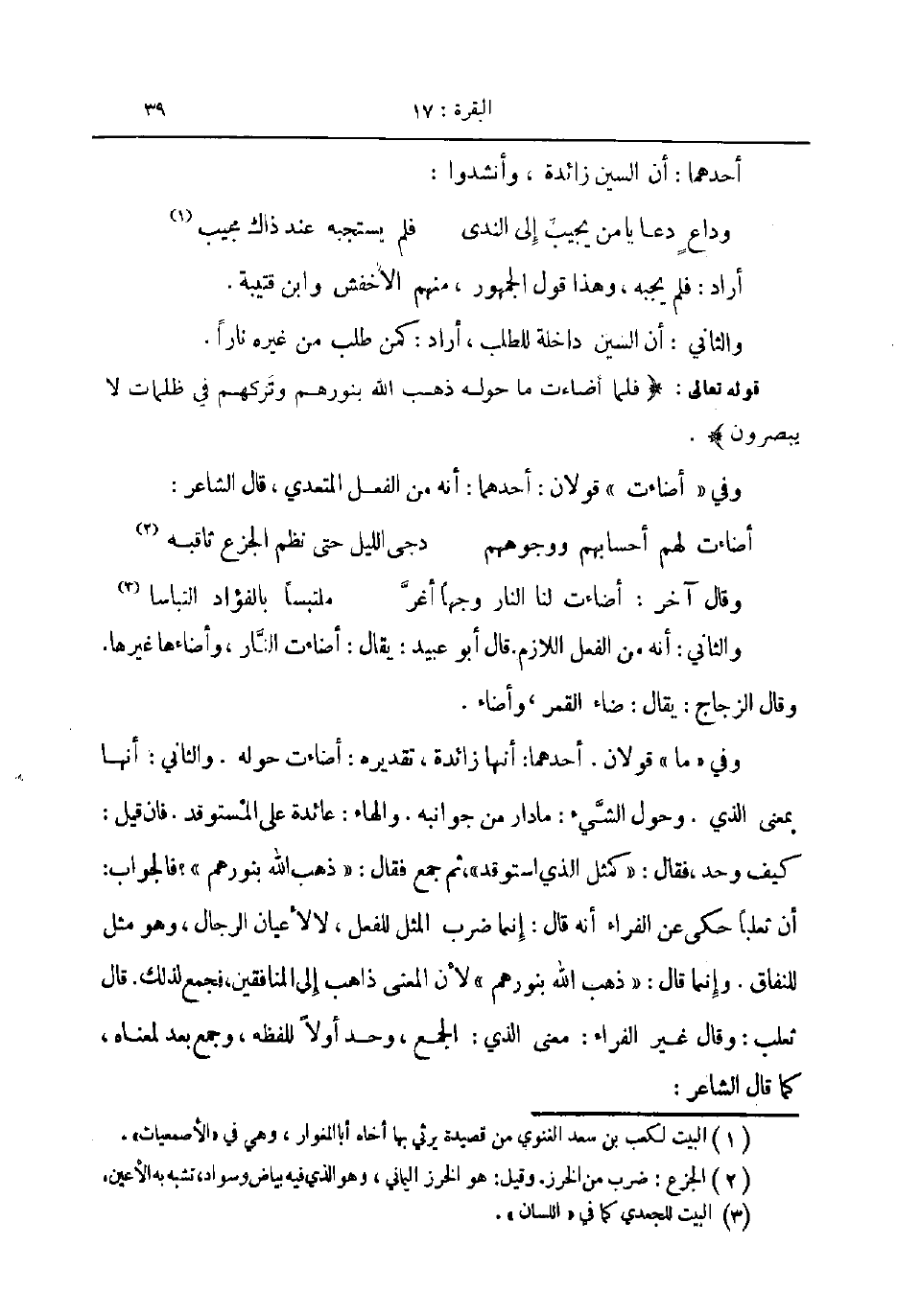 والثاني أنه من الفعل اللازم قال أبو عبيد يقال أضاءت النار وأضاءها غيرها وقال الزجاج يقال ضاء القمر وأضاء