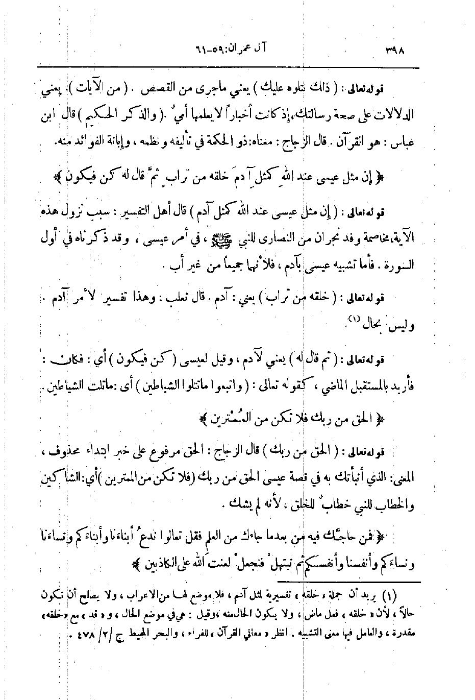 إن مثل عيسى عند الله كمثل آدم خلقه من تراب ثم قال له كن فيكون