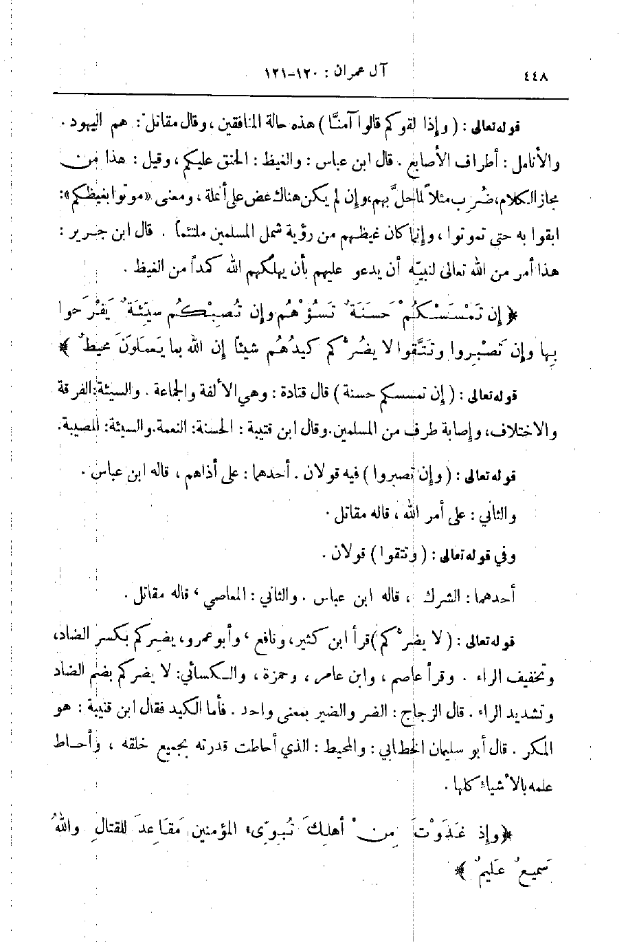 قوله تعالى لا يضركم قرأ ابن كثير ونافع و ابو عمرو يضركم بكسر الضاد وتخفيف الراء وقرأ عاصم وابن عامر وحمزة والكسائي لا يضركم بضم الضاد وتشديد الراء قال الزجاج الضر والضير بمعنى واحد فأما الكيد فقال ابن قتيبة هو المكر قال أبو سليمان الخطابي والمحيط الذي أحاطت قدرته بجميع خلقه وأحاط علمه بالأشياء كلها