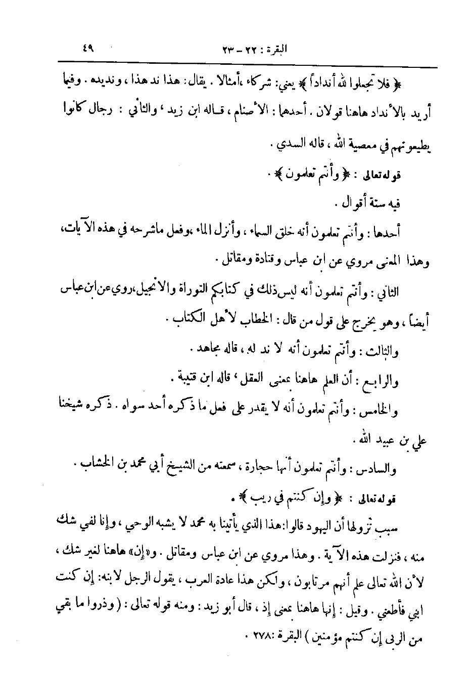 سبب نزلوها أن إليهود قالوا هذا الذي يأتينا به محمد لا يشبه الوحي وإنا لفي شك منه فنزلت هذه الآية وهذا مروي عن ابن عباس ومقاتل و إن ها هنا لغير شك لأن الله تعالى علم أنهم مرتابون ولكن هذا عادة العرب يقول الرجل لابنه إن كنت ابني فأطعني وقيل إنها هاهنا بمعنى إذ قال أبو زيد ومنه قوله تعالى وذروا ما بقي من الربى إن كنتم مؤمين البقرة 278