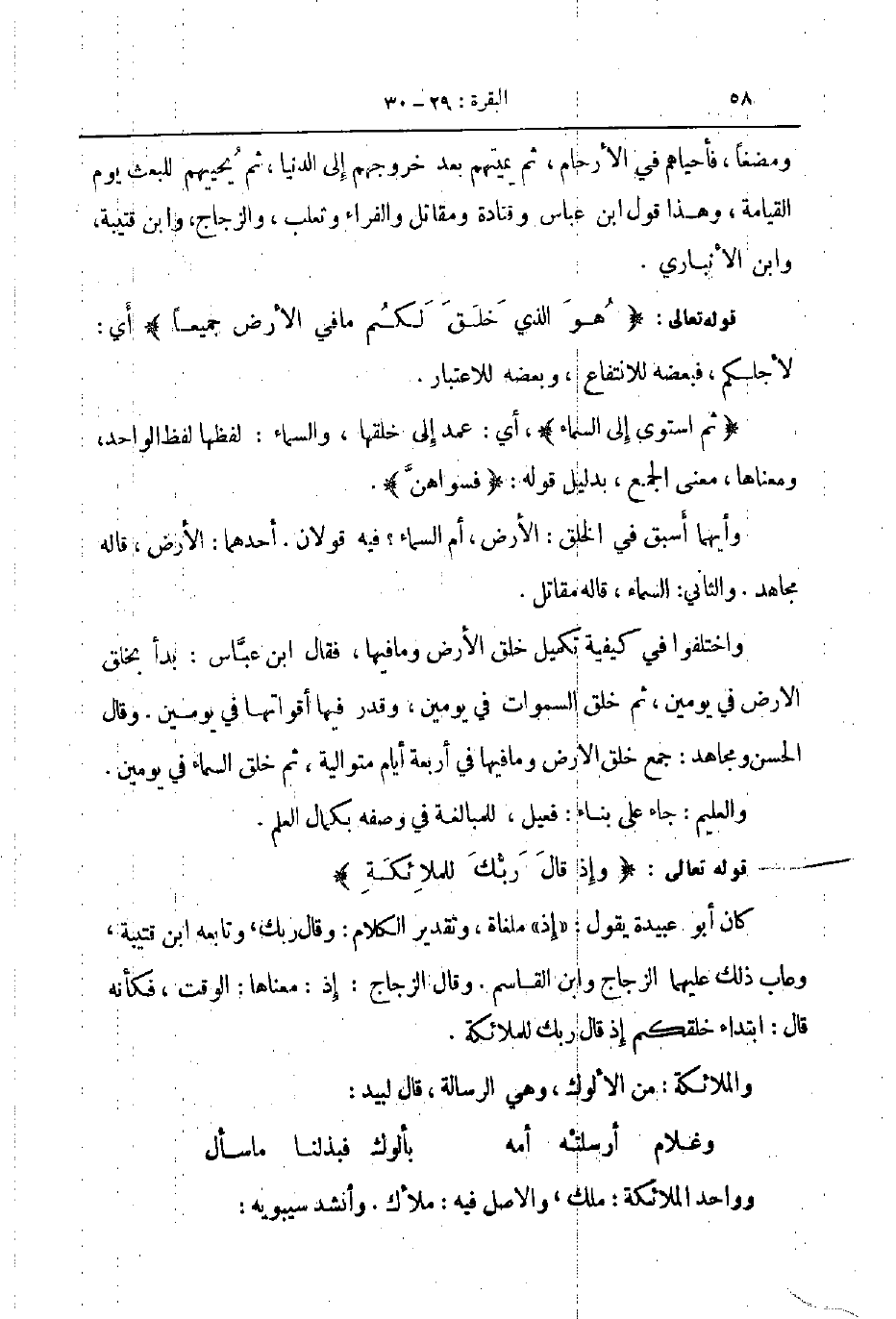 ثم استوى الى السماء أي عمد الى خلقها والسماء لفظها لفظ الواحد ومعناها معنى الجمع بدليل قوله فسواهن