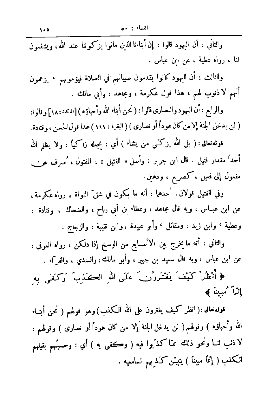 والثاني أنه ما يخرج بين الأصابع من الوسخ إذا دلكن رواه العوفي عن ابن عباس وبه قال سعيد بن جبير وأبو مالك والسدي والفراء أنظر كيف يفترون على الله الكذب وكفى به إثما مبينا