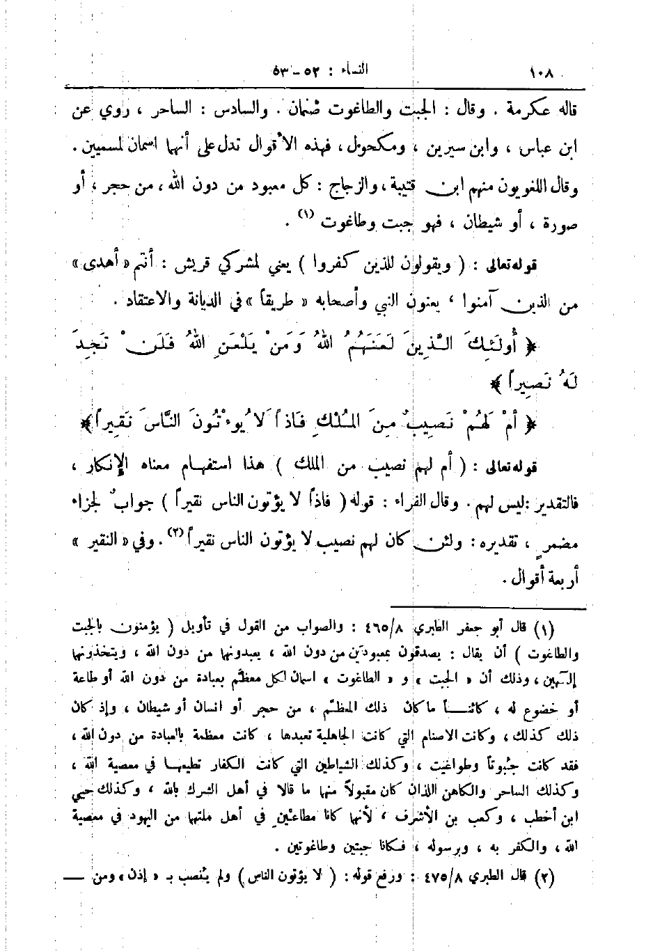 قوله تعالى ويقولون للذين كفروا يعني لمشركي قريش أنتم أهدى من الذين آمنوا يعنون النبي وأصحابه طريقا في الديانة والاعتقاد أولئك الذين لعنهم الله ومن يلعن الله فلن تجد له نصيرا أم لهم نصيب من الملك فاذا لا يؤتون الناس نقيرا