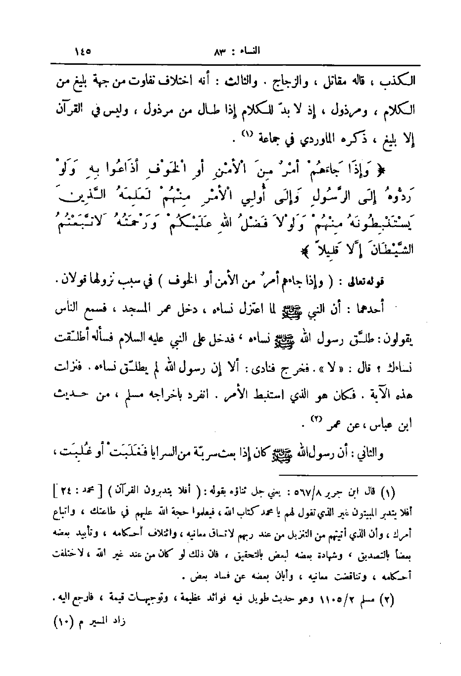 الكذب قاله مقاتل والزجاج والثالث أنه اختلاف تفاوت من جهة بليغ من الكلام ومرذول إذ لا بد للكلام إذا طال من مرذول وليس في القرآن إلا بليغ ذكره الماوردي في جماعة وإذا جاءهم أمر من الأمن أو الخوف إذاعوا به ولو ردوه إلى الرسول وإلى أولي الأمر منهم لعلمه الذين يستنبطونه منهم ولولا فضل الله عليكم ورحمته لاتبعتم الشيطان إلا قليلا