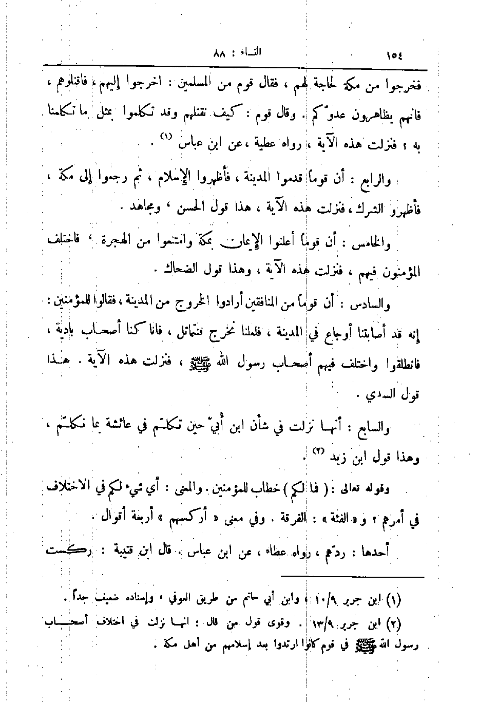 فخرجوا من مكة لحاجة لهم فقال قوم من المسلمين اخرجوا إليهم فاقتلوهم فانهم يظاهرون عدوكم وقال قوم كيف نقتلهم وقد تكلموا بمثل ما تكلمنا به فنزلت هذه الآية رواه عطية عن ابن عباس