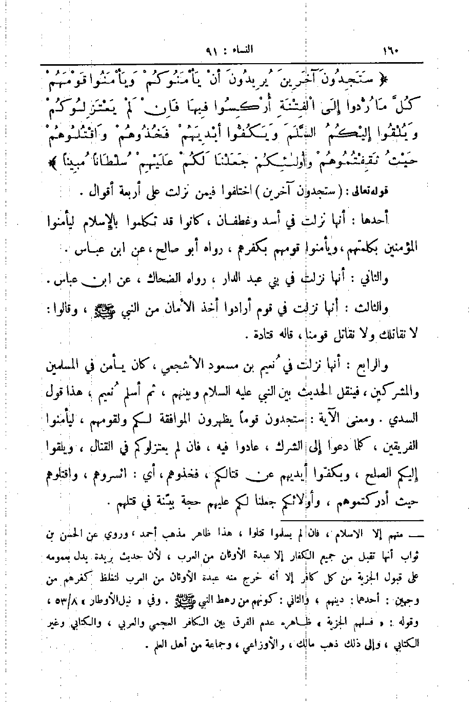ستجدون آخرين يريدون أن يأمنوكم ويأمنوا قومهم كل ما ردوا إلى الفتنة أركسوا فيها فان لم يعتزلوكم ويلقوا إليكم السلم ويكفوا أيديهم فخذوهم واقتلوهم حيث ثقفتموهم وأولئكم جعلنا لكم عليهم سلطانا مبينا