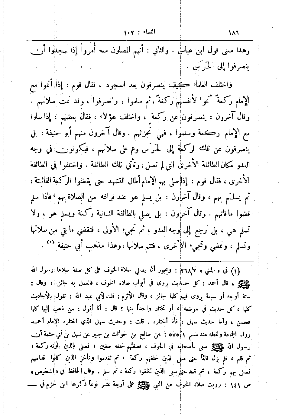 وقال آخرون ينصرفون عن ركعة واختلف هؤلاء فقال بعضهم إذا صلوا مع الإمام ركعة وسلموا فهي تجزئهم وقال آخرون منهم أبو حنيفة بل ينصرفون عن تلك الركعة إلى الحرس وهم على صلاتهم فيكونون في وجه العدو مكان الطائفة الأخرى التي لم تصل وتأتي تلك الطائفة واختلفوا في الطائفة الأخرى فقال قوم إذا صلى بهم الإمام أطال التشهد حتى يقضوا الركعة الفائتة ثم يسلم بها وقال آخرون بل يسلم هو عند فراغه من الصلاة بهم فاذا سلم قضوا ما فاتهم وقال آخرون بل يصلي بالطائفة الثانية ركعة ويسلم هو ولا تسلم هي بل ترجع إلى وجه العدو ثم تجيء الأولى فتقضي ما بقي من صلاتها وتسلم وتمضي وتجيء الأخرى فتتم صلاتها وهذا مذهب أبي حنيفة