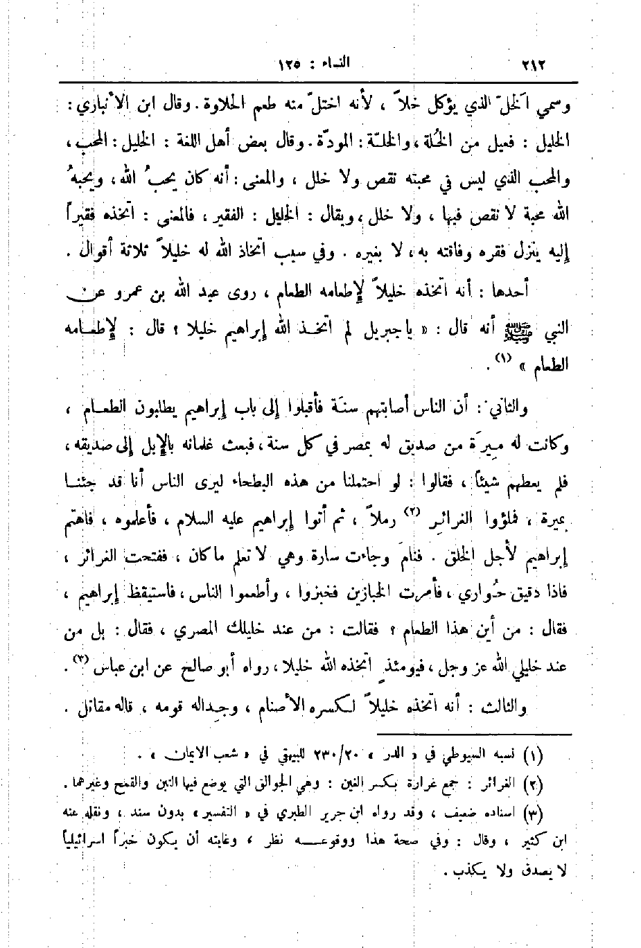 وسمي الخل الذي يؤكل خلا لأنه اختل منه طعم الحلاوة وقال ابن الأنباري الخليل فعيل من الخلة والخلة المودة وقال بعض أهل اللغة الخليل المحب والمحب الذي ليس في محبته نقص ولا خلل والمعنى أنه كان يحب الله ويحبه الله محبة لا نقص فيها ولا خلل ويقال الخليل الفقير فالمعنى اتخذه فقيرا إليه ينزل فقره وفاقته به لا بغيره وفي سبب اتخاذ الله له خليلا ثلاثة أقوال