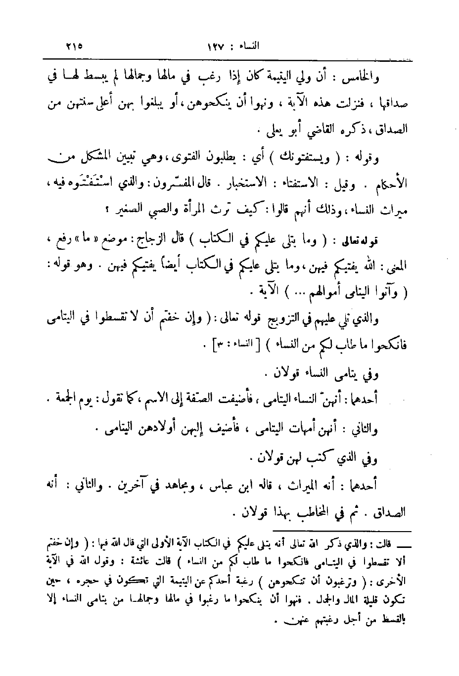 وفي يتامى النساء قولان