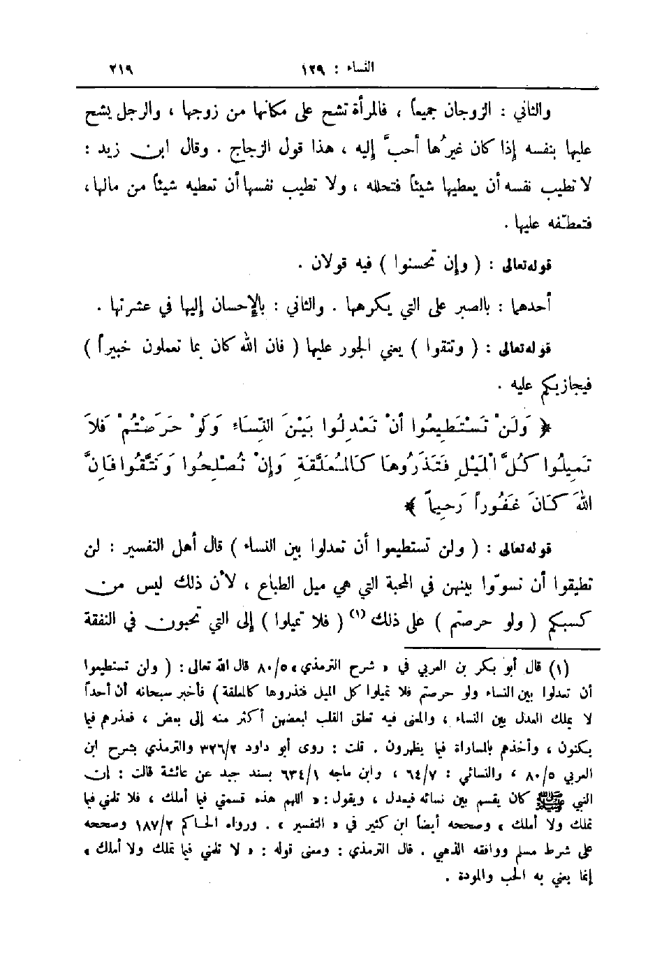 قوله تعالى ولن تستطيعوا أن تعدلوا بين النساء قال أهل التفسير لن تطيقوا أن تسووا بينهن في المحبة التي هي ميل الطباع لأن ذلك ليس من كسبكم ولو حرصتم على ذلك فلا تميلوا إلى التي تحبون في النفقة