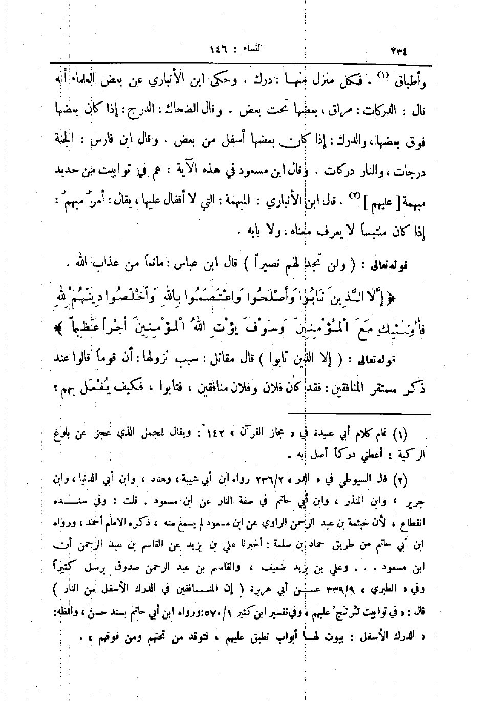 قوله تعالى ولن تجد لهم نصيرا قال ابن عباس مانعا من عذاب الله إلا الذين تابوا وأصلحوا واعتصموا بالله وأخلصوا دينهم لله فأولئك مع المؤمنين وسوف يؤت الله المؤمنين أجرا عظيما