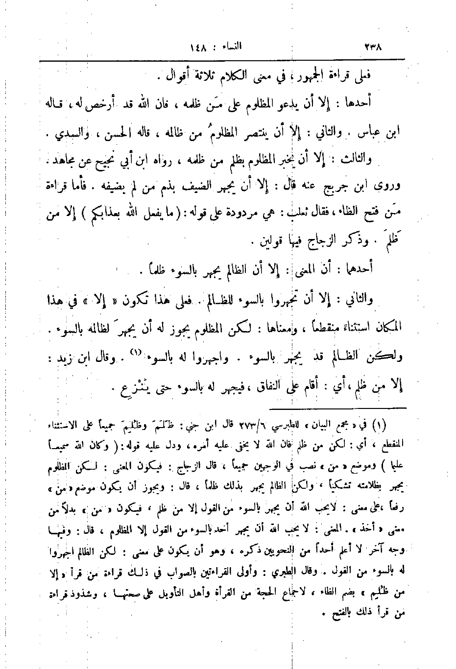 وروى ابن جريج عنه قال إلا أن يجهر الضيف بذم من لم يضيفه فأما قراءة من فتح الظاء فقال ثعلب هي مردودة على قوله ما يفعل الله بعذابكم إلا من ظلم وذكر الزجاج فيها قولين