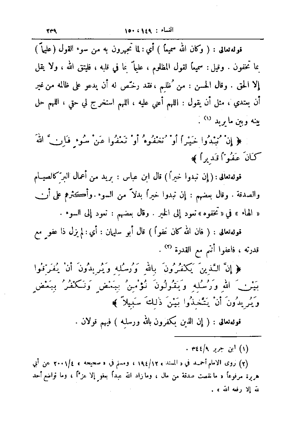 قوله تعالى إن تبدوا خيرا قال ابن عباس يريد من أعمال البر كالصيام والصدقة وقال بعضهم إن تبدوا خيرا بدلا من السوء وأكثرهم على أن الهاء في تخفوه تعود إلى الخير وقال بعضهم تعود إلى السوء