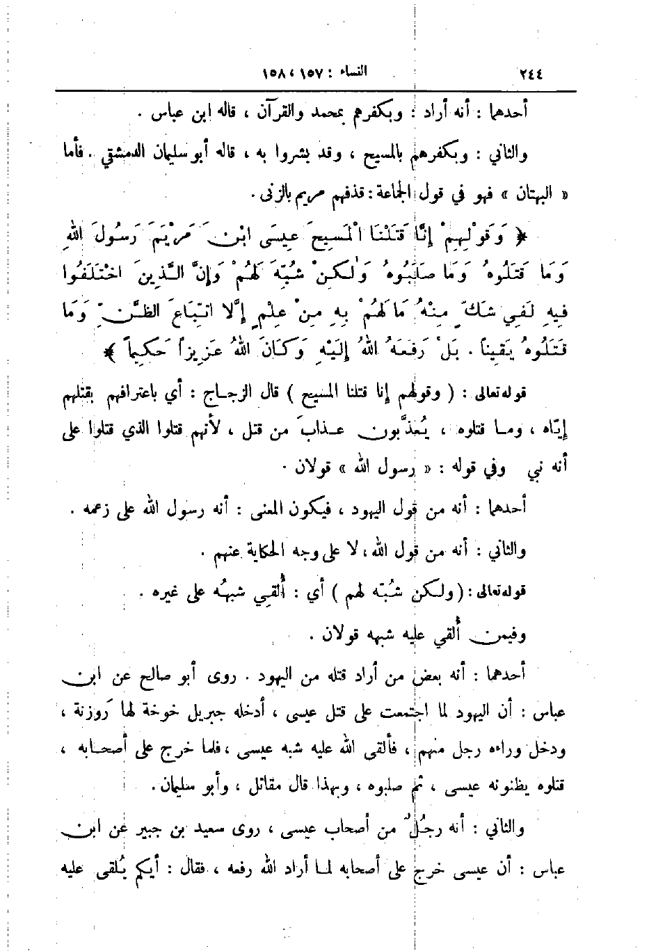 والثاني وبكفرهم بالمسيح وقد بشروا به قاله أبو سليمان الدمشقي فأما البهتان فهو في قول الجماعة قذفهم مريم بالزنى وقولهم إنا قتلنا المسيح عيسى ابن مريم رسول الله وما قتلوه وما صلبوه ولكن شبه لهم وإن الذين اختلفوا فيه لفي شك منه ما لهم به من علم إلا اتباع الظن وما قتلوه يقينا بل رفعه الله إليه وكان الله عزيزا حكيما