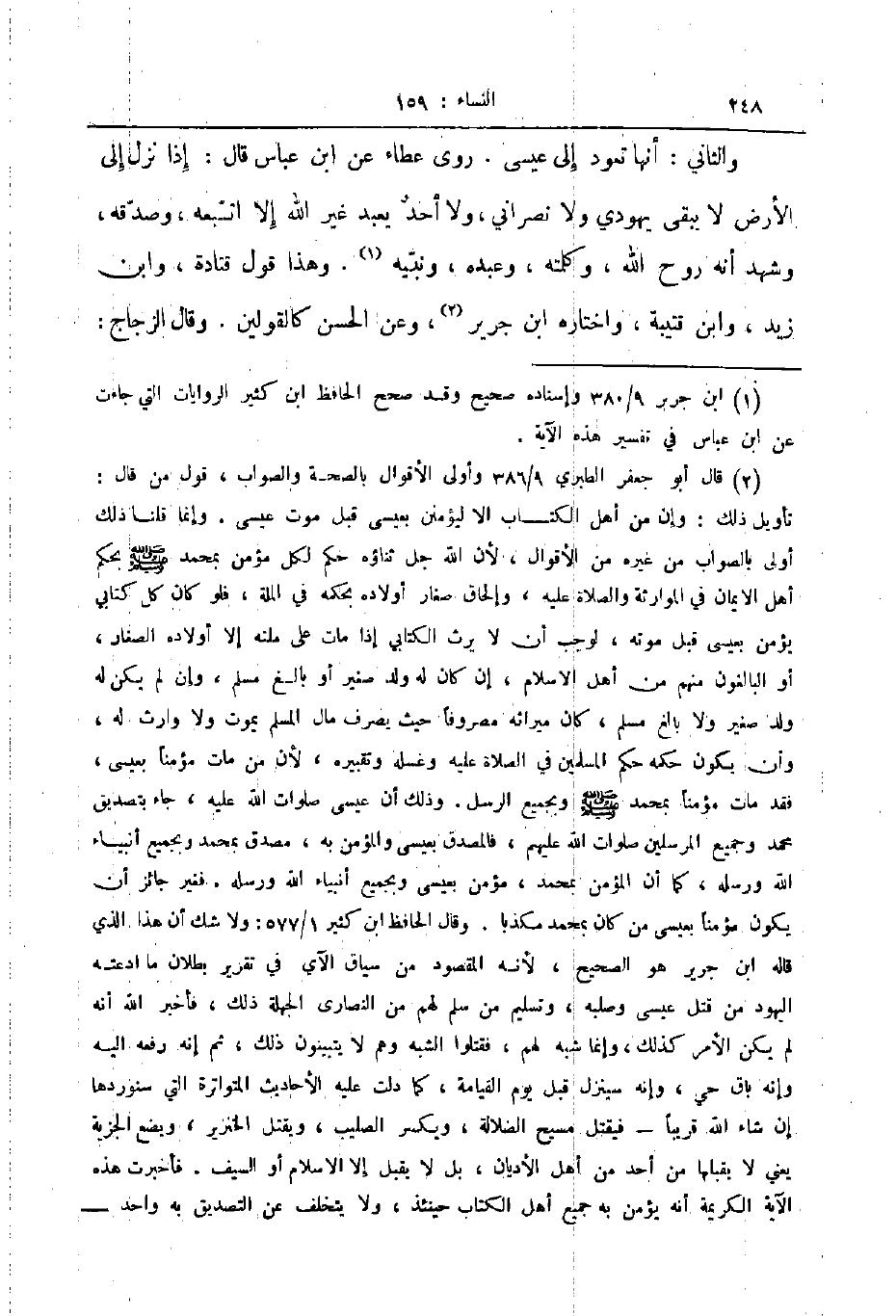 والثاني أنها تعود إلى عيسى روى عطاء عن ابن عباس قال إذا نزل إلى الأرض لا يبقى يهودي ولا نصراني ولا أحد يعبد غير الله إلا اتبعه وصدقه وشهد أنه روح الله وكلمته وعبده ونبيه وهذا قول قتادة وابن زيد وابن قتيبة واختاره ابن جرير وعن الحسن كالقولين وقال الزجاج