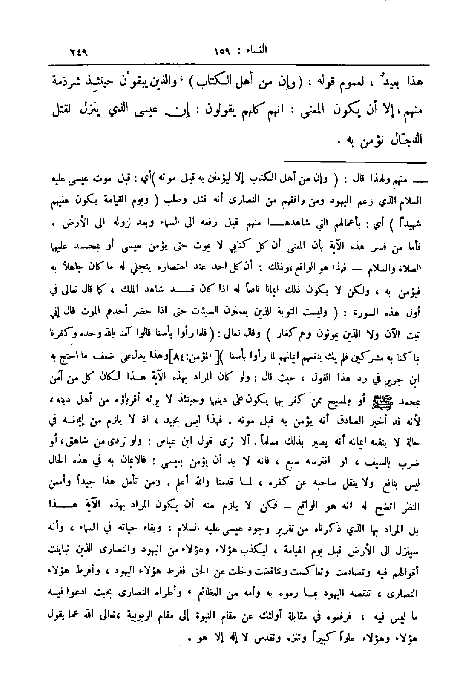 هذا بعيد لعموم قوله وإن من أهل الكتاب والذين يبقون حينئذ شرذمة منهم إلا أن يكون المعنى أنهم كلهم يقولون إن عيسى الذي ينزل لقتل الدجال نؤمن به