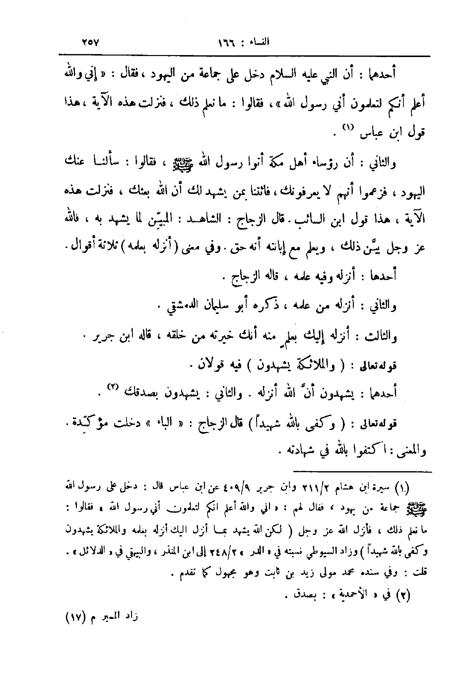 والثاني أن رؤساء أهل مكة أتوا رسول الله صلى الله عليه و سلم فقالوا سألنا عنك اليهود فزعموا أنهم لا يعرفونك فائتنا بمن يشهد لك أن الله بعثك فنزلت هذه الآية هذا قول ابن السائب قال الزجاج الشاهد المبين لم يشهد به فالله عز و جل بين ذلك ويعلم مع إبانته أنه حق وفي معنى أنزله بعلمه ثلاثة أقوال