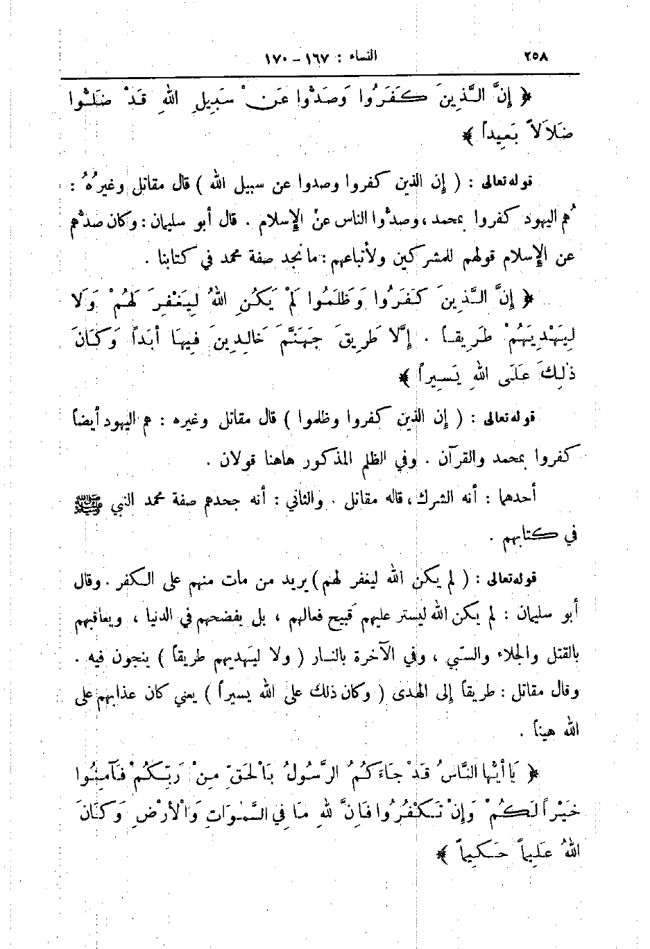قوله تعالى إن الذين كفروا وصدوا عن سبيل الله قال مقاتل وغيره هم اليهود كفروا بمحمد وصدوا الناس عن الإسلام قال أبو سليمان وكان صدهم عن الإسلام قولهم للمشركين ولأتباعهم ما نجد صفة محمد في كتابنا إن الذين كفروا وظلموا لم يكن الله ليغفر لهم ولا ليهديهم طريقا إلا طريق جهنم خالدين فيها أبدا وكان ذلك على الله يسيرا