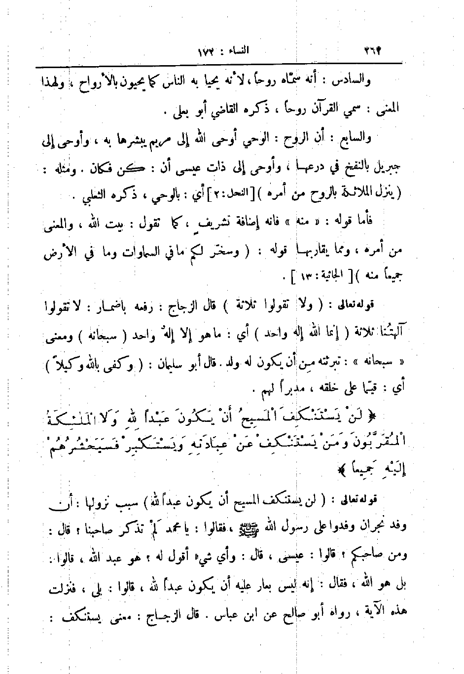 قوله تعالى لن يستنكف المسيح أن يكون عبدا لله سبب نزولها أن وفد نجران وفدوا على رسول الله صلى الله عليه و سلم فقالوا يا محمد لم تذكر صاحبنا قال ومن صاحبكم قالوا عيسى قال وأي شيء أقول له هو عبد الله قالوا بل هو الله فقال إنه ليس بعار عليه أن يكون عبدا لله قالوا بلى فنزلت هذه الآية رواه أبو صالح عن ابن عباس قال الزجاج معنى يستنكف