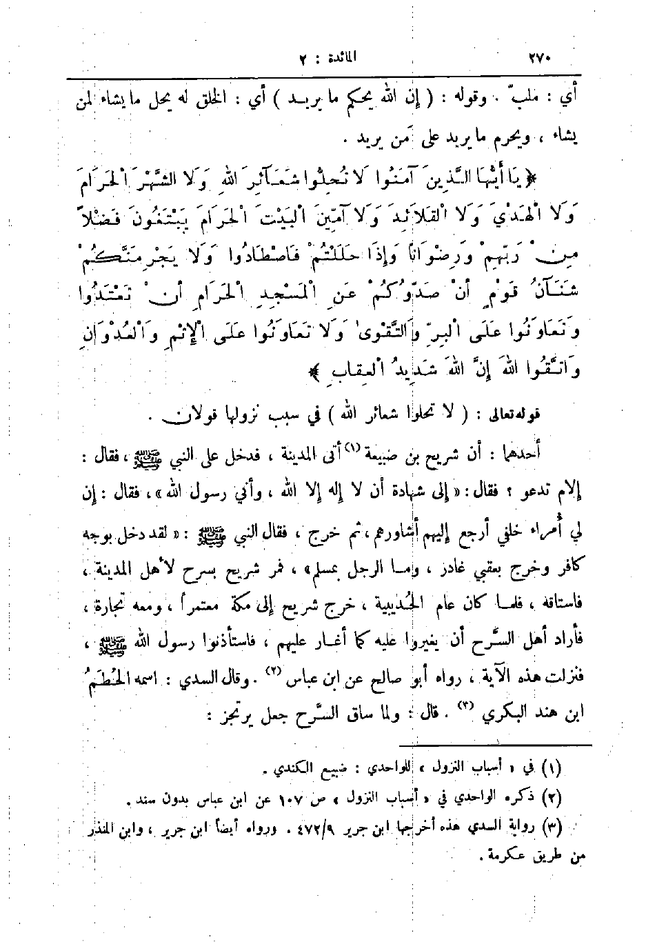 قوله تعالى لا تحلوا شعائر الله في سبب نزولها قولان