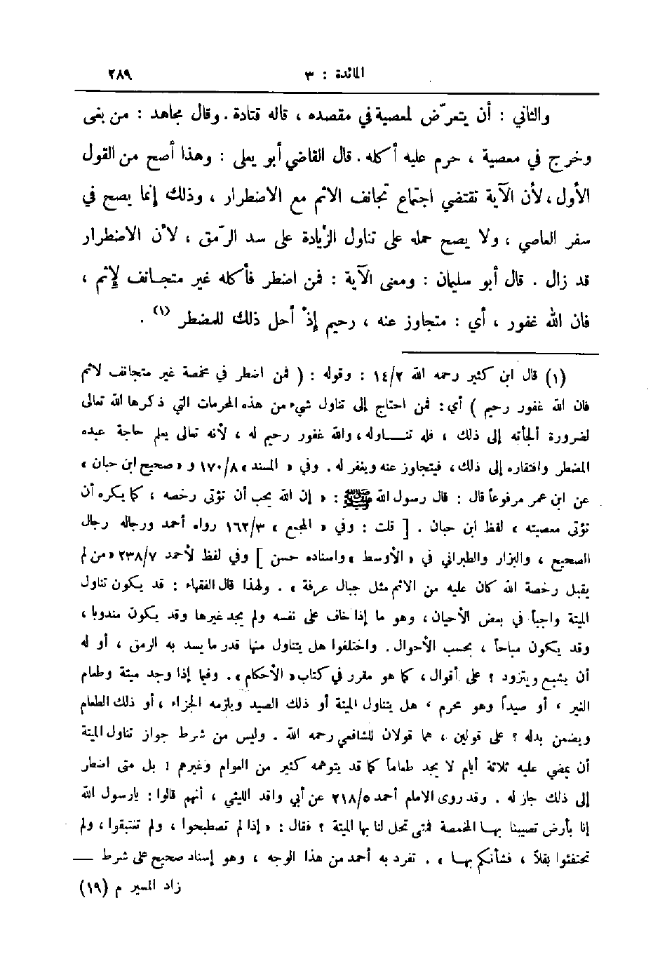 والثاني أن يتعرض لمعصية في مقصده قاله قتادة وقال مجاهد من بغى وخرج في معصية حرم عليه أكله قال القاضي أبو يعلى وهذا أصح من القول الأول لأن الآية تقتضي اجتماع تجانف الاثم مع الاضطرار وذلك إنما يصح في سفرالعاصي ولا يصح حمله على تناول الزيادة على سد الرمق لأن الاضطرار قد زال قال أبو سليمان ومعنى الآية فمن اضطر فأكله غير متجانف لإثم فان الله غفور أي متجاوز عنه رحيم إذ أحل ذلك للمضطر