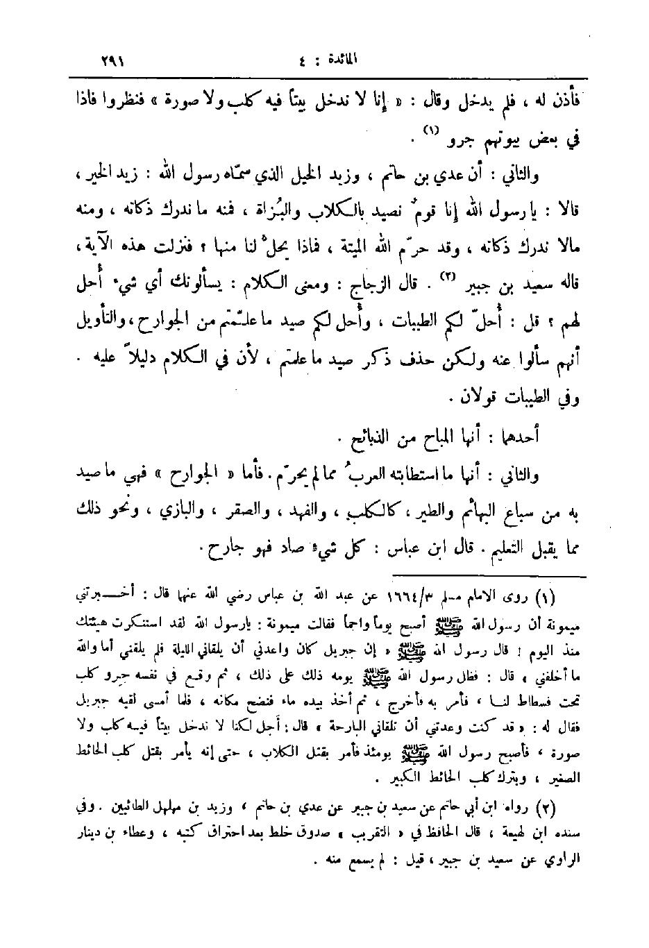 والثاني أن عدي بن حاتم وزيد الخيل الذي سماه رسول الله زيد الخير قالا يا رسول الله إنا قوم نصيد بالكلاب والبزاة فمنه ما ندرك ذكاته ومنه مالا ندرك ذكاته وقد حرم الله الميتة فماذا يحل لنا منها فنزلت هذه الآية قاله سعيد بن جبير قال الزجاج ومعنى الكلام يسألونك أي شيء أحل لهم قل أحل لكم الطيبات وأحل لكم صيد ما علمتم من الجوارح والتأويل أنهم سألوا عنه ولكن حذف ذكر صيد ما علمتم لأن في الكلام دليلا عليه