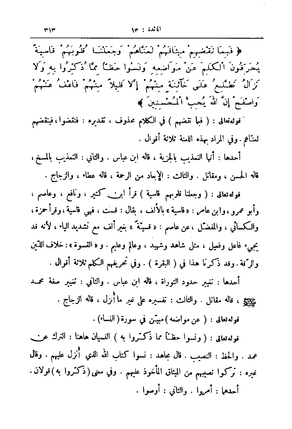 فبما نقضهم ميثاقهم لعناهم وجعلنا قلوبهم قاسية يحرفون الكلم عن مواضعه ونسوا حظا مما ذكروا به ولا تزال تطلع على خآئنة منهم إلا قليلا منهم فاعف عنهم واصفح إن الله يحب المحسنين