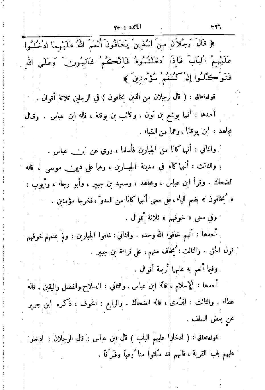 قال رجلان من الذين يخافون أنعم الله عليهما ادخلوا عليهم الباب فاذا دخلتموه فانكم غالبون وعلى الله فتوكلوا إن كنتم مؤمنين