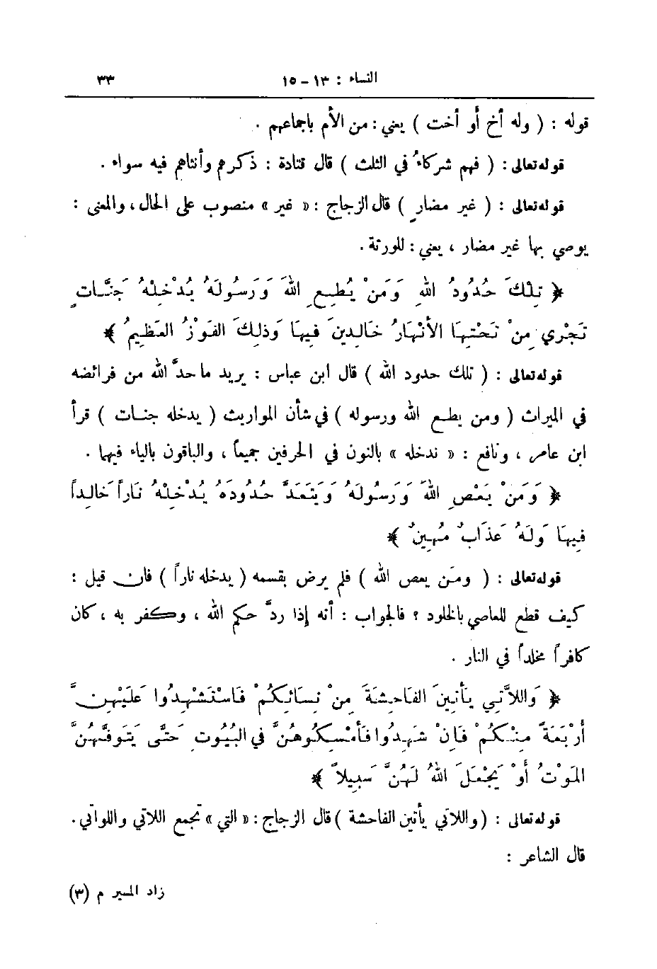 قوله تعالى فهم شركاء في الثلث قال قتادة ذكرهم وأنثاهم فيه سواء