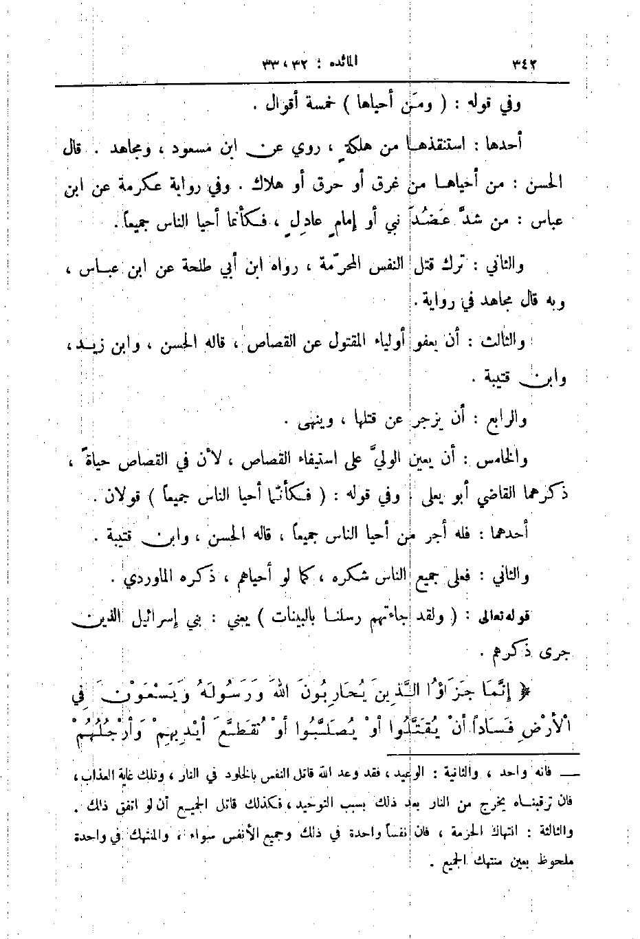 أحدها استنقذها من هلكة روي عن ابن مسعود ومجاهد قال الحسن من أحياها من غرق أو حرق أو هلاك وفي رواية عكرمة عن ابن عباس من شد عضد نبي أو إمام عادل فكأنما أحيا الناس جميعا