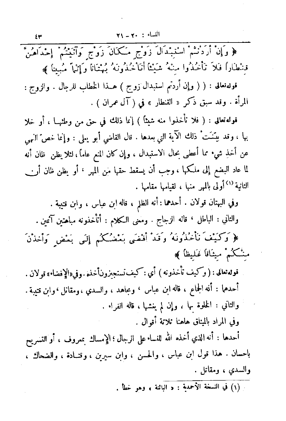 قوله تعالى وإن أردتم استبدال زوج هذا الخطاب للرجال والزوج المرأة وقد سبق ذكر القنطار في آل عمران