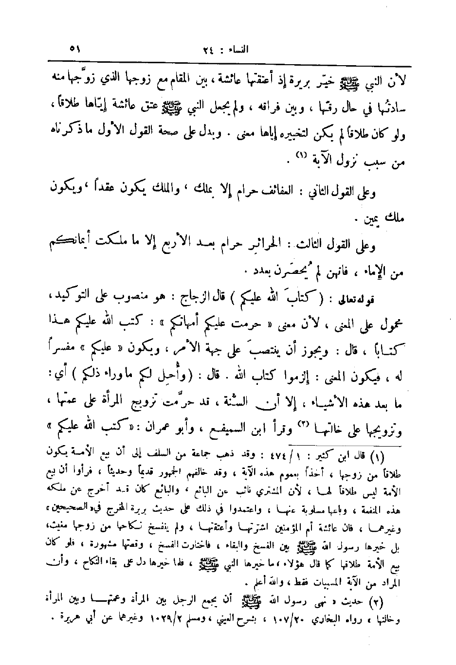 قوله تعالى كتاب الله عليكم قال الزجاج هو منصوب على التوكيد محمول على المعنى لأن معنى حرمت عليكم أمهاتكم كتب الله عليكم هذا كتابا قال ويجوز أن ينتصب على جهة الأمر ويكون عليكم مفسرا له فيكون المعنى إلزموا كتاب الله قال وأحل لكم ما وراء ذلكم أي ما بعد هذه الأشياء إلا أن السنة قد حرمت تزويج المرأة على عمتها وتزويجها على خالتها وقرأ ابن السميفع وأبو عمران كتب الله عليكم