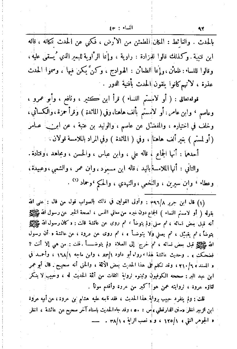 والثاني أنها الملامسة باليد قاله ابن مسعود وابن عمر والشعبي وعبيدة وعطاء وابن سيرين والنخعي والنهدي والحكم وحماد