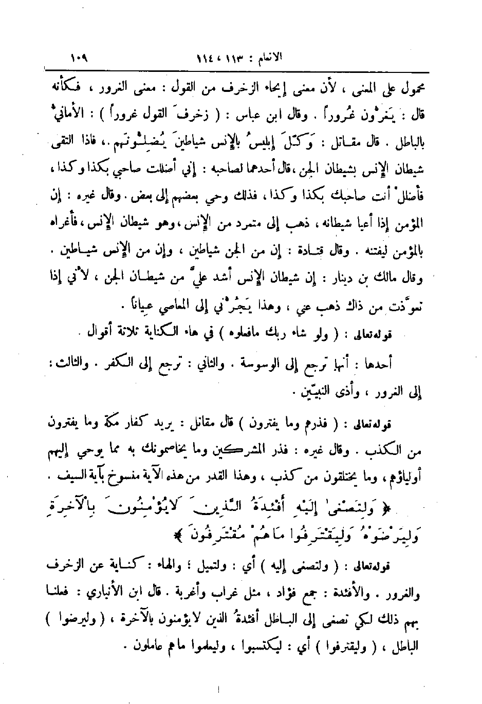 قوله تعالى ولتصغي إليه أي ولتميل والهاء كناية عن الزخرف والغرور والأفئدة جمع فؤاد مثل غراب وأغربة قال ابن الأنباري فعلنا بهم ذلك لكي تصغي إلى الباطل أفئدة الذين لا يؤمنون بالآخرة وليرضوا الباطل وليقترفوا أي ليكتسبوا وليعلموا ما هم عاملون