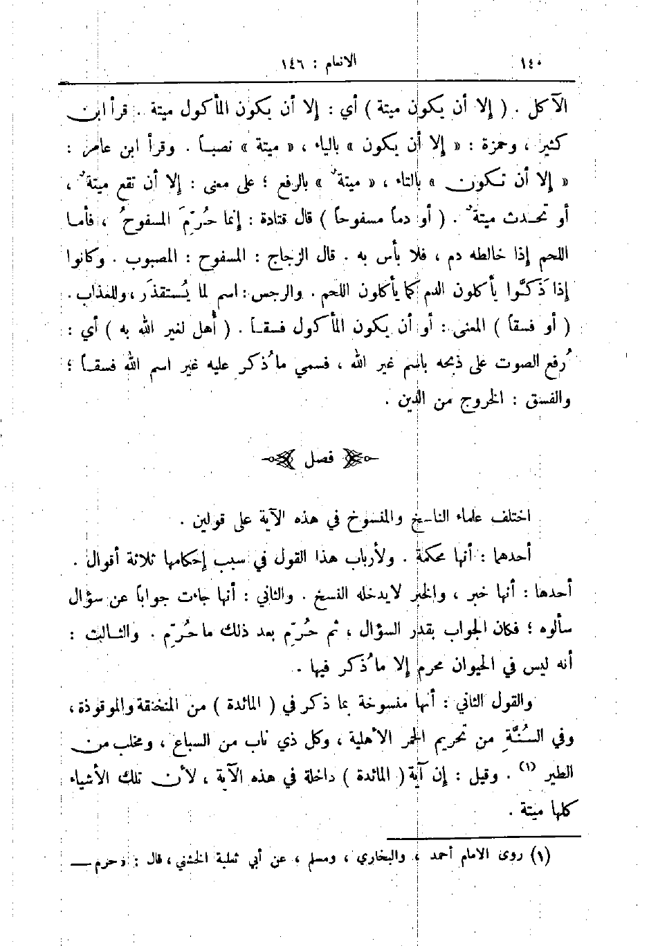 الآكل إلا أن يكون ميتة أي إلا أن يكون المأكول ميتة قرأ ابن كثير وحمزة إلا أن يكون بالياء ميتة نصبا وقرأ ابن عامر إلا أن تكون بالتاء ميتة بالرفع على معنى إلا أن تقع ميتة أو تحدث ميتة أو دما مسفوحا قال قتادة إنما حرم المسفوح فأما اللحم إذا خالطه دم فلا بأس به قال الزجاج المسفوح المصبوب وكانوا إذا ذكوا يأكلون الدم كما يأكلون اللحم والرجس اسم لما يستقذر وللعذاب أو فسقا المعنى أو أن يكون المأكول فسقا أهل لغير الله به أي رفع الصوت على ذبحه باسم غير الله فسمى ما ذكر عليه غير اسم الله فسقا والفسق الخروج من الدين