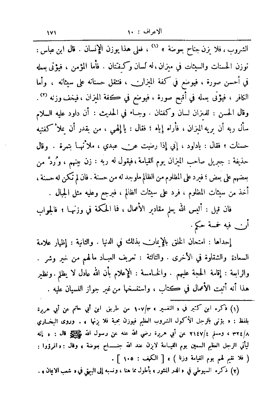 فان قيل أليس الله يعلم مقادير الأعمال فما الحكمة في وزنها فالجواب أن فيه خمسة حكم