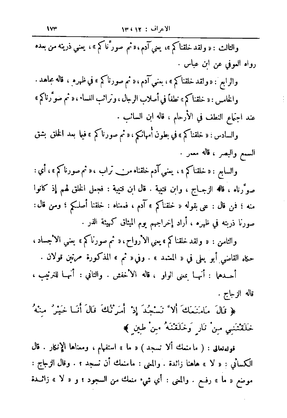 والسابع خلقناكم يعني آدم خلقناه من تراب ثم صورناكم أي صورناه قاله الزجاج وابن قتيبة قال ابن قتيبة فجعل الخلق لهم إذ كانوا منه فمن قاله عني بقوله خلقناكم آدم فمعناه خلقنا أصلكم ومن قال صورنا ذريته في ظهره أراد إخراجهم يوم الميثاق كهيئة الذر