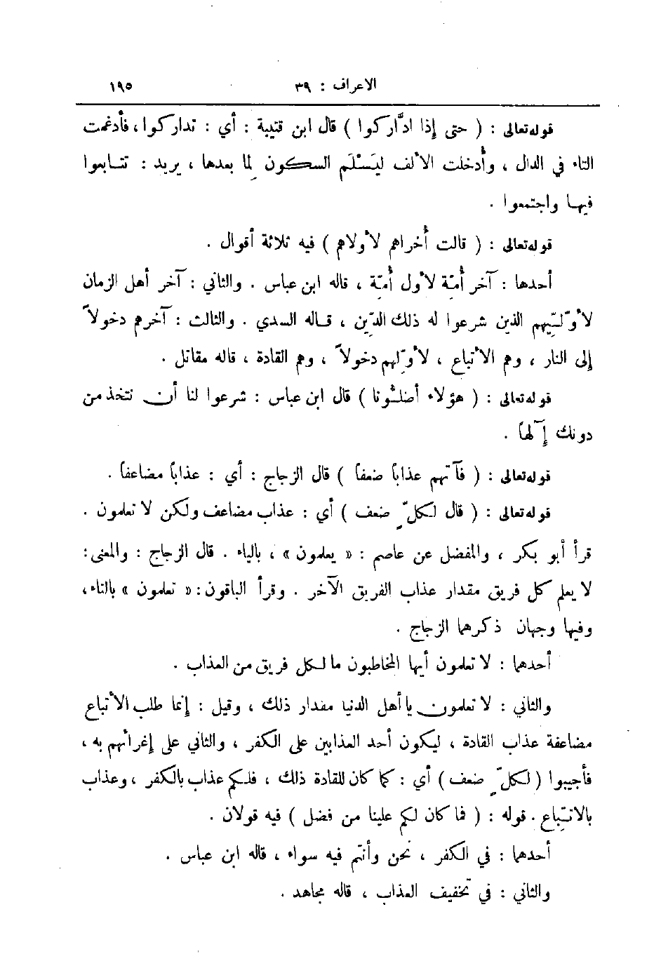 قوله تعالى قال لكل ضعف أي عذاب مضاعف ولكن لا تعلمون