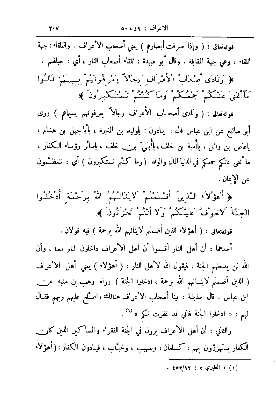 قوله تعالى ونادى أصحاب الأعراف رجالا يعرفونهم بسيماهم روى ابو صالح عن ابن عباس قال ينادون يا وليد بن المغيرة يا أبا جهل بن هشام يا عاص بن وائل يا أمية بن خلف يا أبي بن خلف يا سائر رؤساء الكفار ما أغنى عنكم جمعكم في الدنيا المال والولد وما كنتم تستكبرون أي تتعظمون عن الإيمان