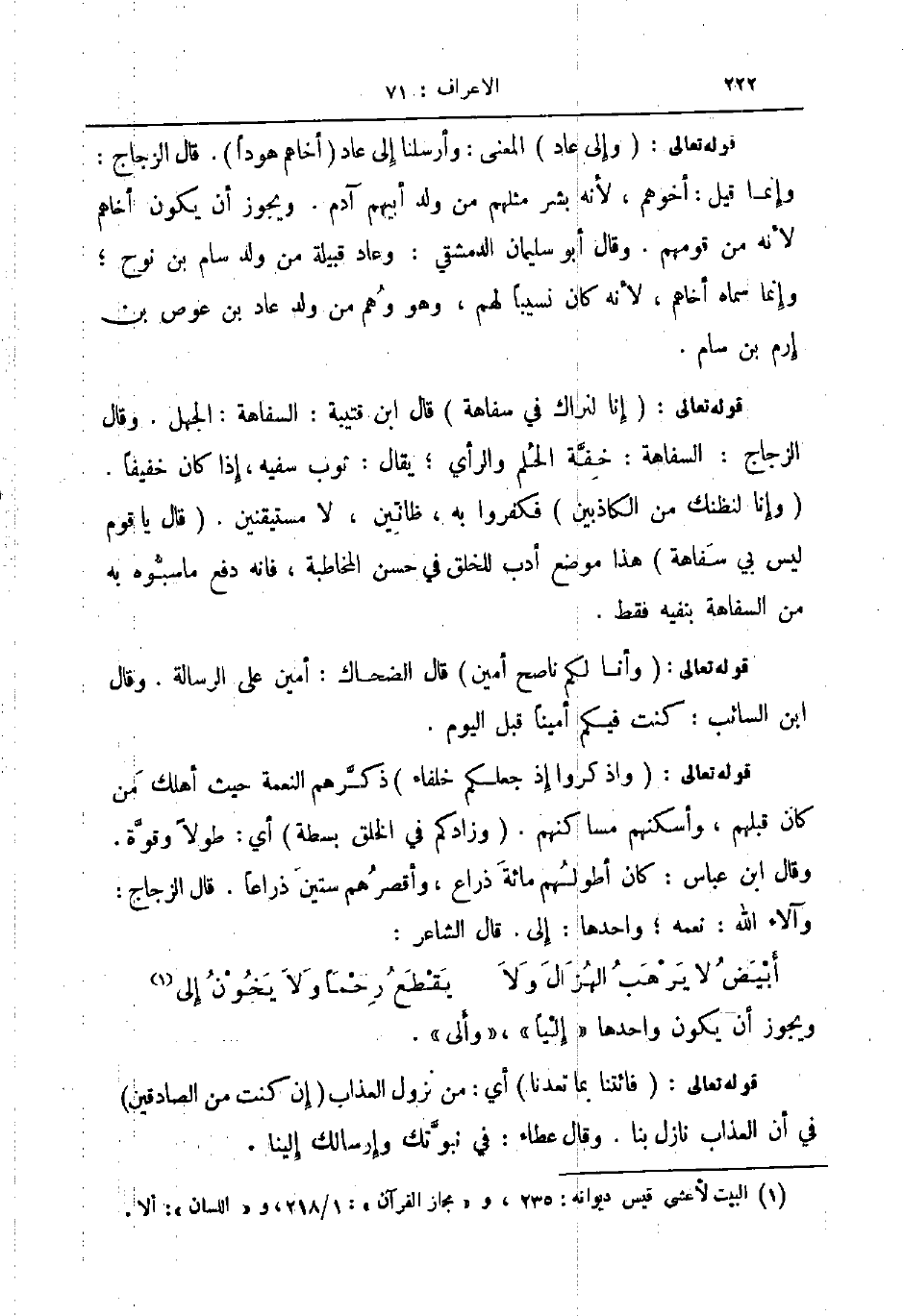 قوله تعالى وإلى عاد المعنى وأرسلنا إلى عاد أخاهم هودا قال الزجاج وإنما قيل أخوهم لأنه بشر مثلها من ولد أبيهم آدم ويجوز أن يكون أخاهم لأنه من قومهم وقال أبو سليمان الدمشقي وعاد قبيلة من ولد سام بن نوح وإنما سماه أخاهم لأنه كان نسيبا لهم وهو وهم من ولد عاد بن عوص بن إرم بن سام