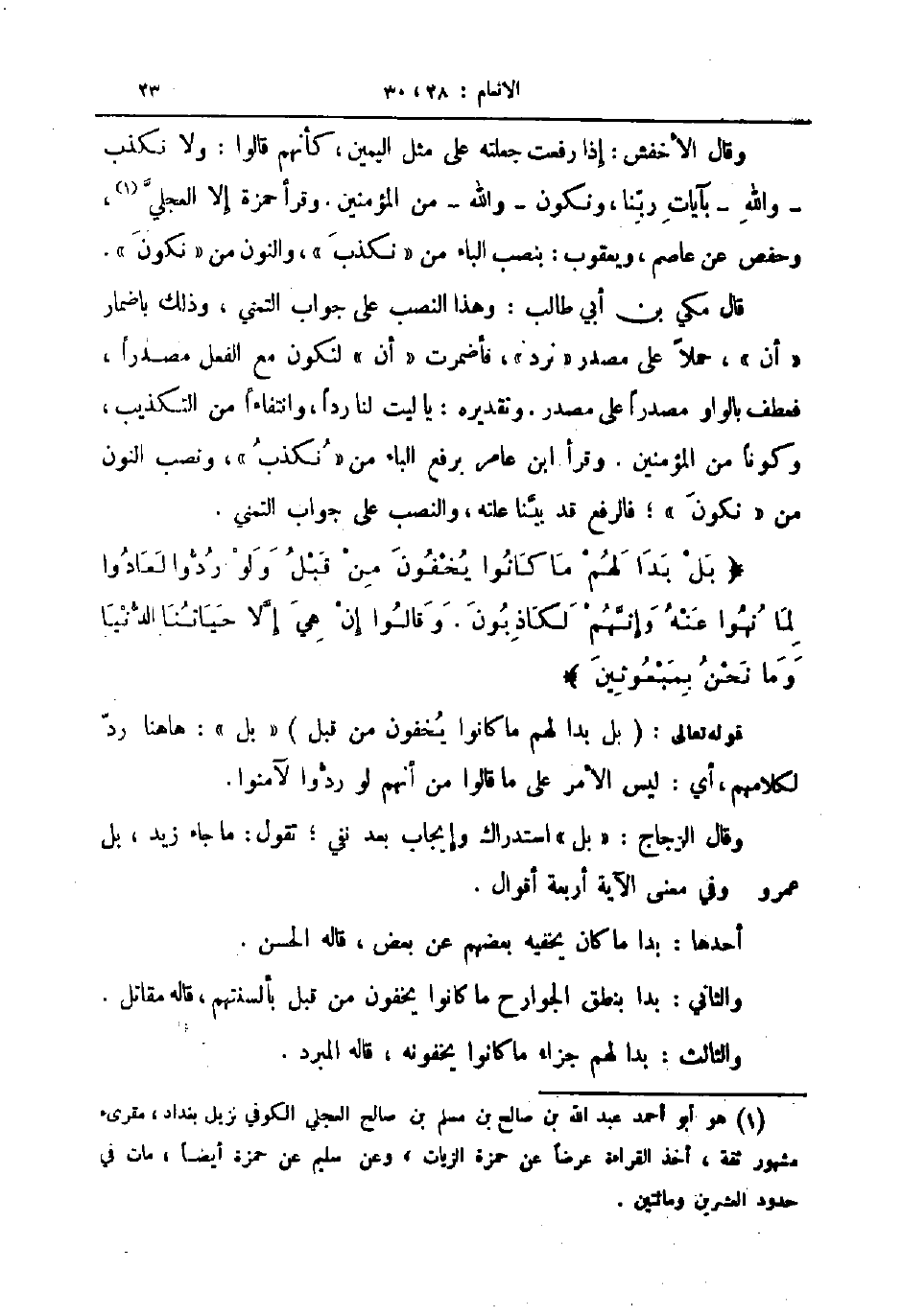 قال مكي بن أبي طالب وهذا النصب على جواب التمني وذلك بإضمار أن حملا على مصدر نرد فأضمرت أن لتكون مع الفعل مصدرا فعطف بالواو مصدرا على مصدر وتقديره يا ليت لنا ردا وانتفاءا من التكذيب وكونا من المؤمنين وقرأ ابن عامر برفع الباء من نكذب ونصب النون من نكون فالرفع قد بينا علته والنصب على جواب التمني