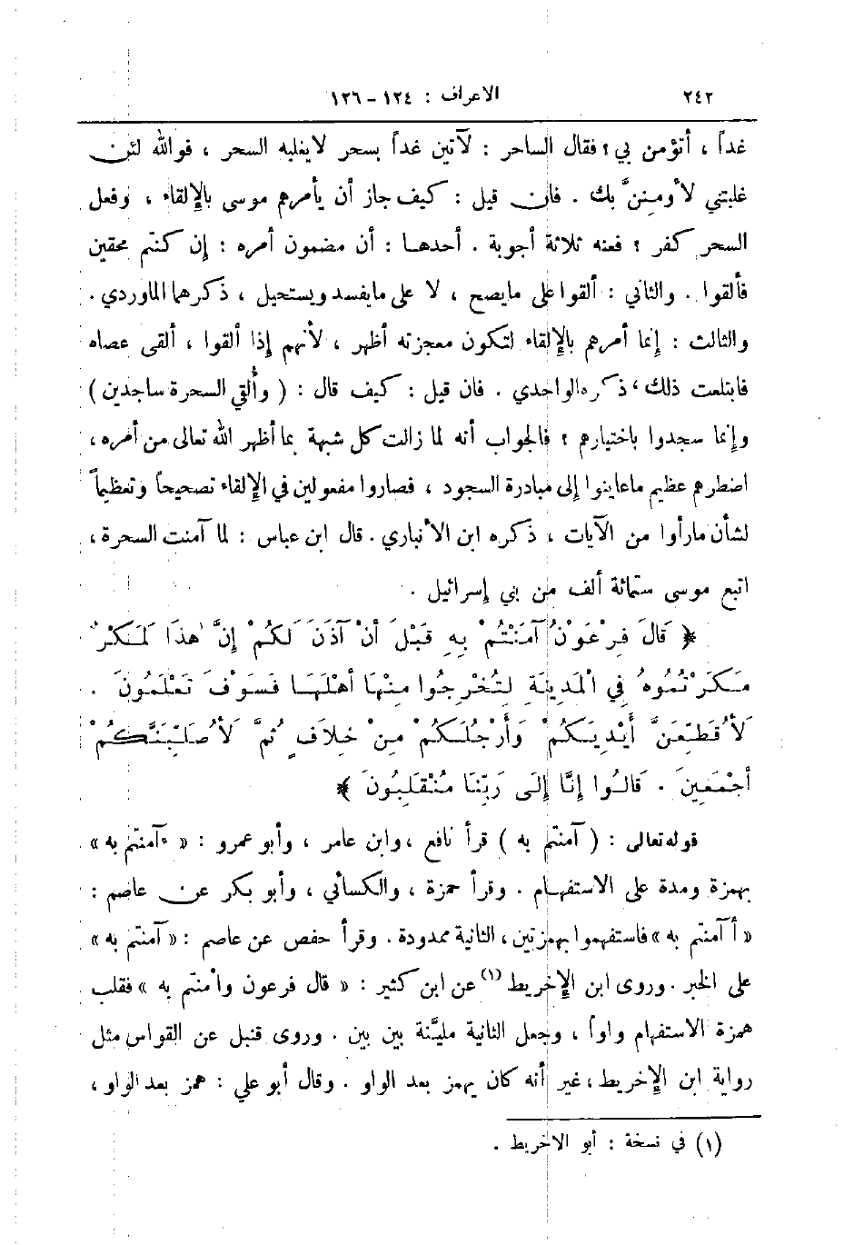قوله تعالى آمنتم به قرأ نافع وابن عامر وأبو عمرو ءآمنتم به بهمزة ومدة على الاستفهام وقرأ حمزة والكسائي وأبو بكر عن عاصم أآمنتم به فاستفهموا بهمزتين الثانية ممدودة وقرأ حفص عن عاصم آمنتم به على الخبر وروى ابن الإخريط عن ابن كثير قال فرعون وأمنتم به فقلب همزة الاستفهام واوا وجعل الثانية ملينة بين بين وروى قنبل عن القواس مثل رواية ابن الإخريط غير أنه كان يهمز بعد الواو وقال أبو علي همز بعد الواو