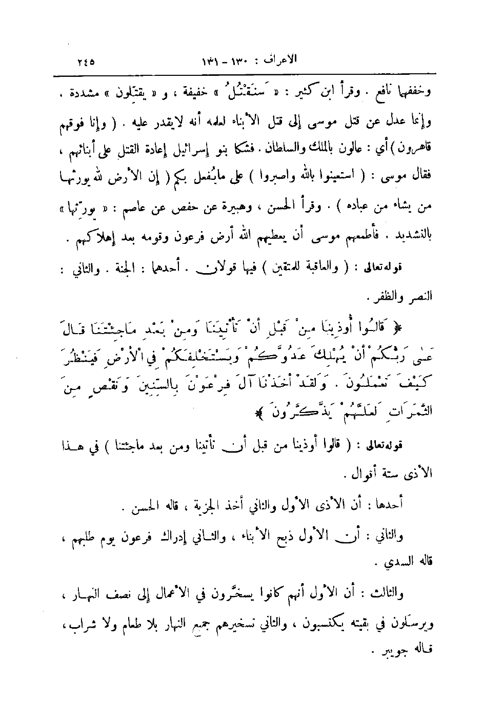 قالوا أوذينا من قبل أن تأتينا ومن بعد ما جئتنا قال عسى ربكم أن يهلك عدوكم ويستخلفكم في الأرض فينظر كيف تعملون ولقد أخذنا آل فرعون بالسنين ونقص من الثمرات لعلهم يذكرون